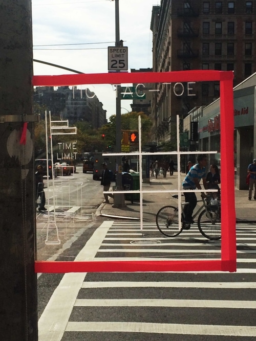 We installed the panel at 110&Broadway, and kept it there for 2 hours. We observed through faraway. During the period, I observed passengers showing strong interests to the game. Some played for awhile and even forgot to cross the street! This small installation created a fun urban encounter for the people.